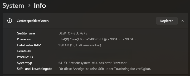 (oder gehe zu Einstellungen > System > Info). - Unter "Systemtyp"steht entweder: