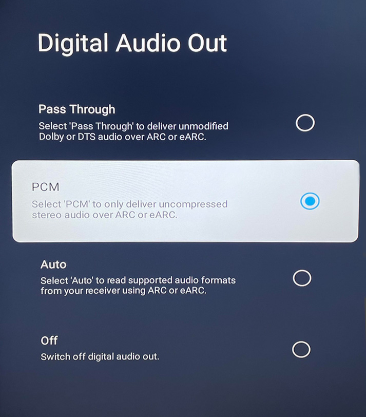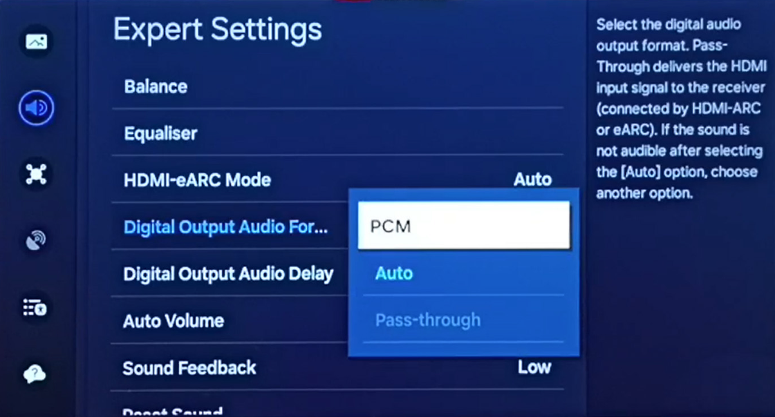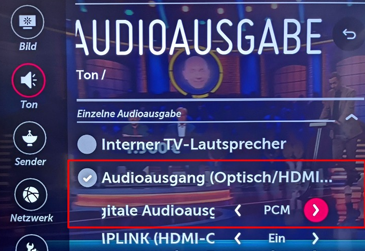 - das Audioformat am TV auf PCM oder Stereo eingestellt ist. Diese Einstellung findet sich unter HDMI-Einstellungen, Toneinstellungen oder Geräteeinstellungen, bei Samsung unter Ton > Experteneinstellungen.